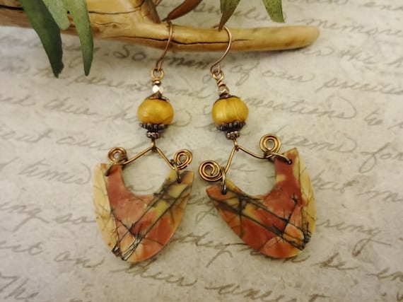 Rustic Cherry Creek Jasper Earrings: Tiger's Eye & Brass Boho Jewelry