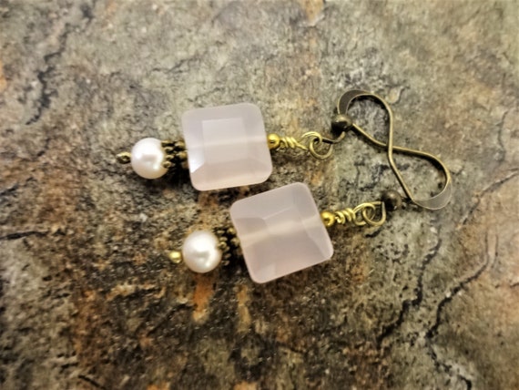 Dendritic Opal Earrings: With Large Gray Pearls and Black Onyx