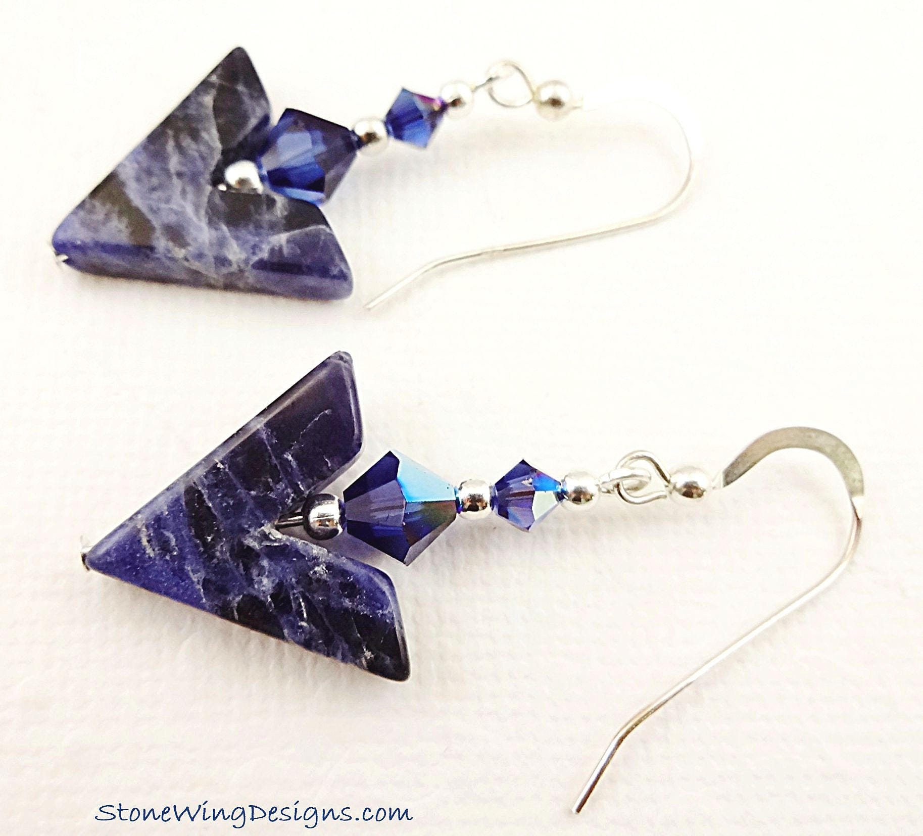 Blue Gemstone Earrings, Sodalite Earrings, Gemstone Earrings, Chevron Earrings, Gemstone V Earrings, Eclectic Earrings, Unique Everyday