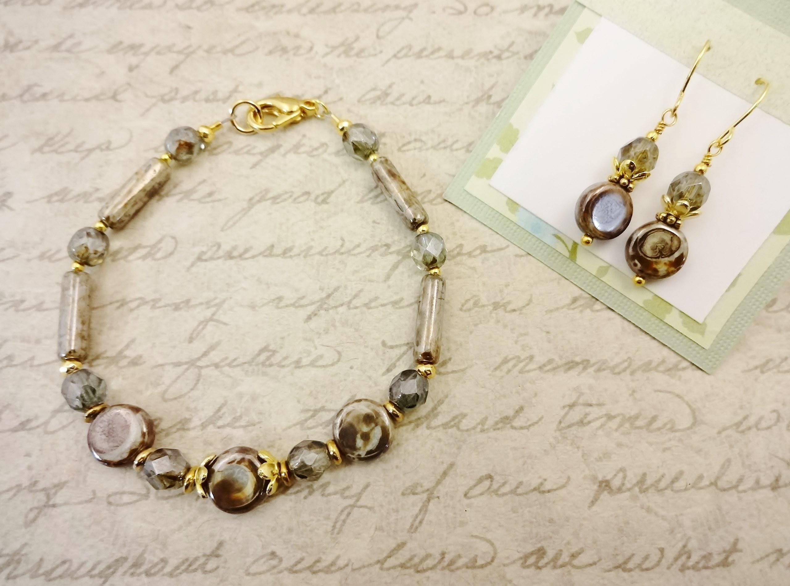 There are matching earrings and bracelet with the coin and Czech Firepolish beads and gold plated pewter flower beadcaps.