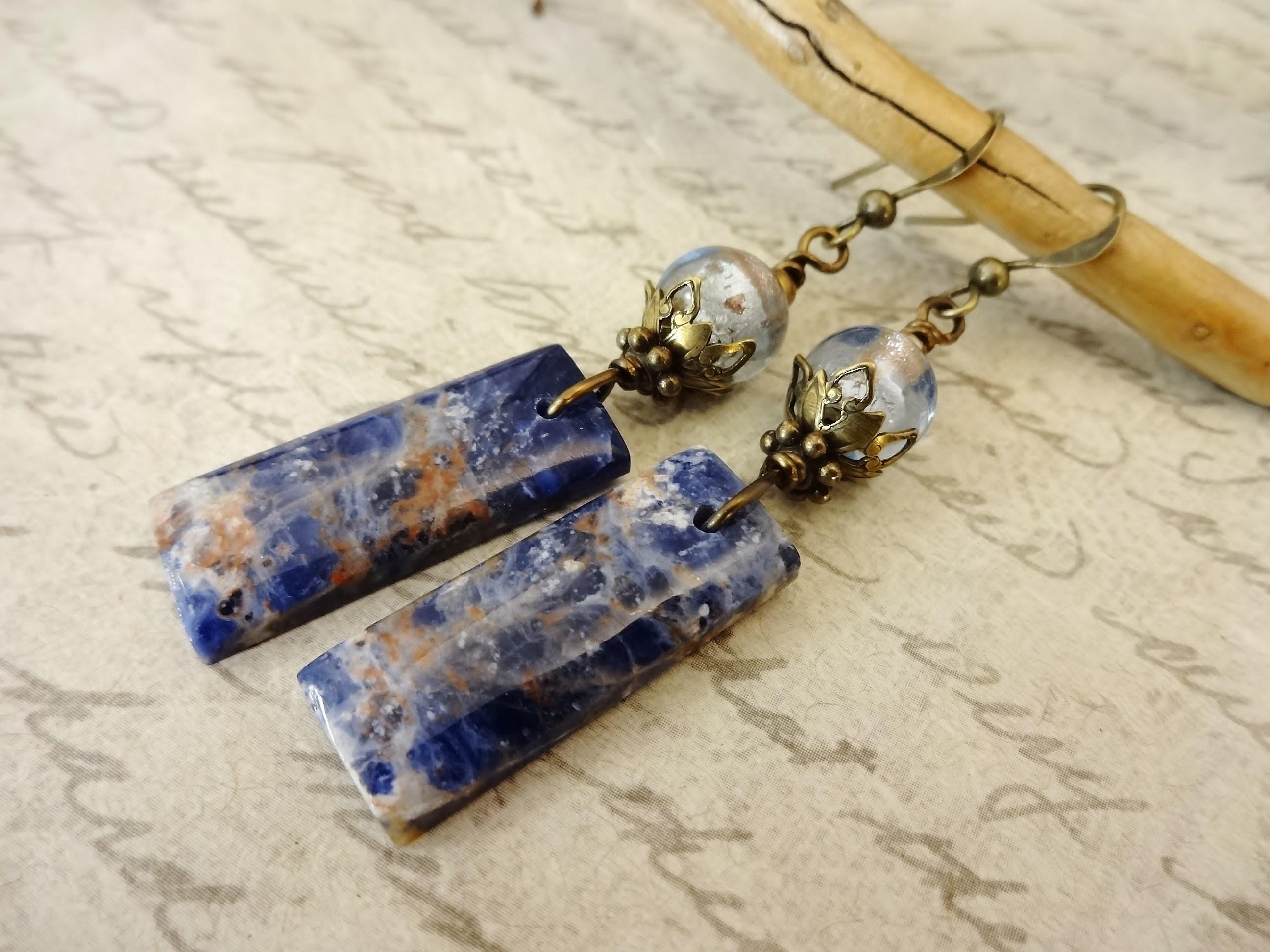 If you love long natural stone earrings and you need something to go with your favorite pair of blue jeans, these might be the earrings you've been looking for. Premium natural Orange Sodalite gemstones are the focus in these gemstone earrings.