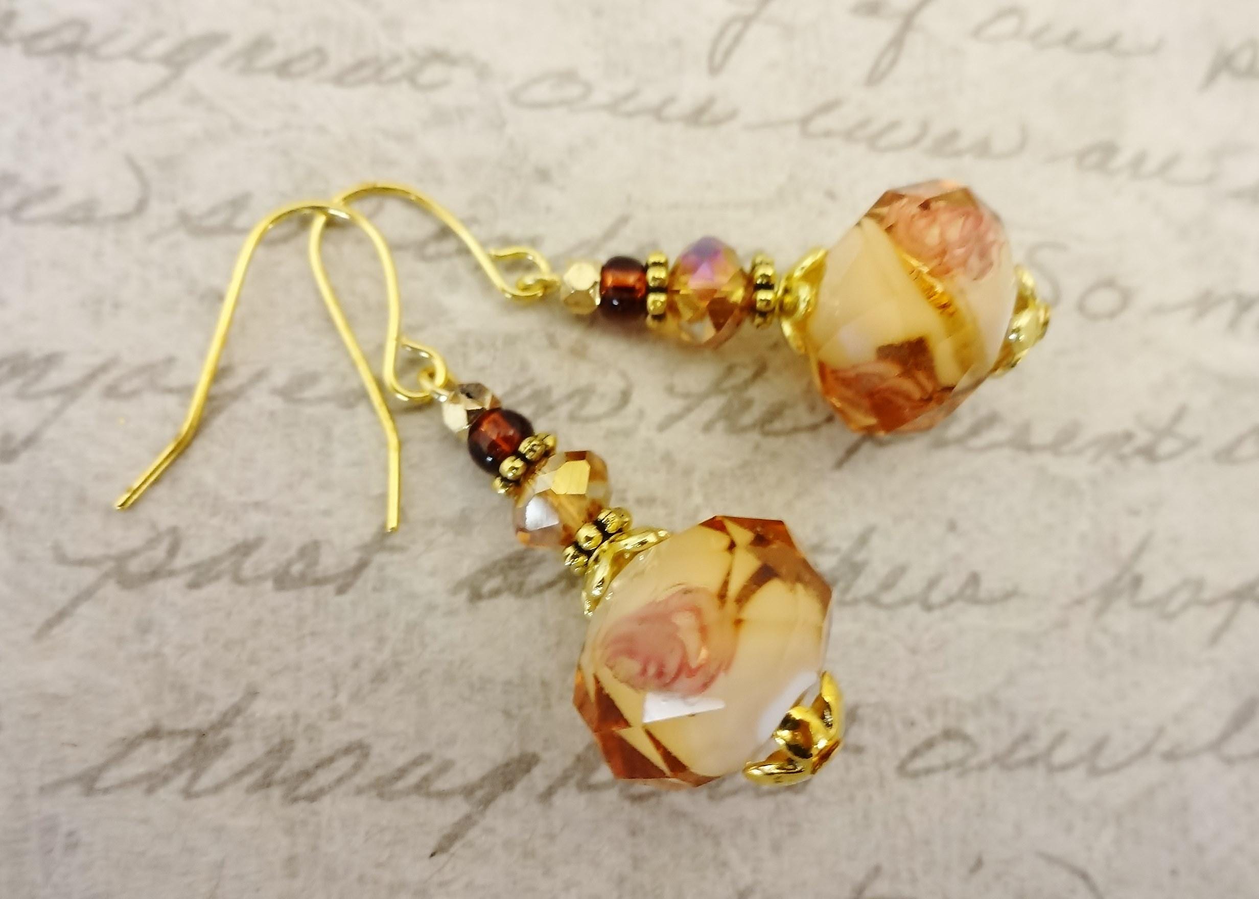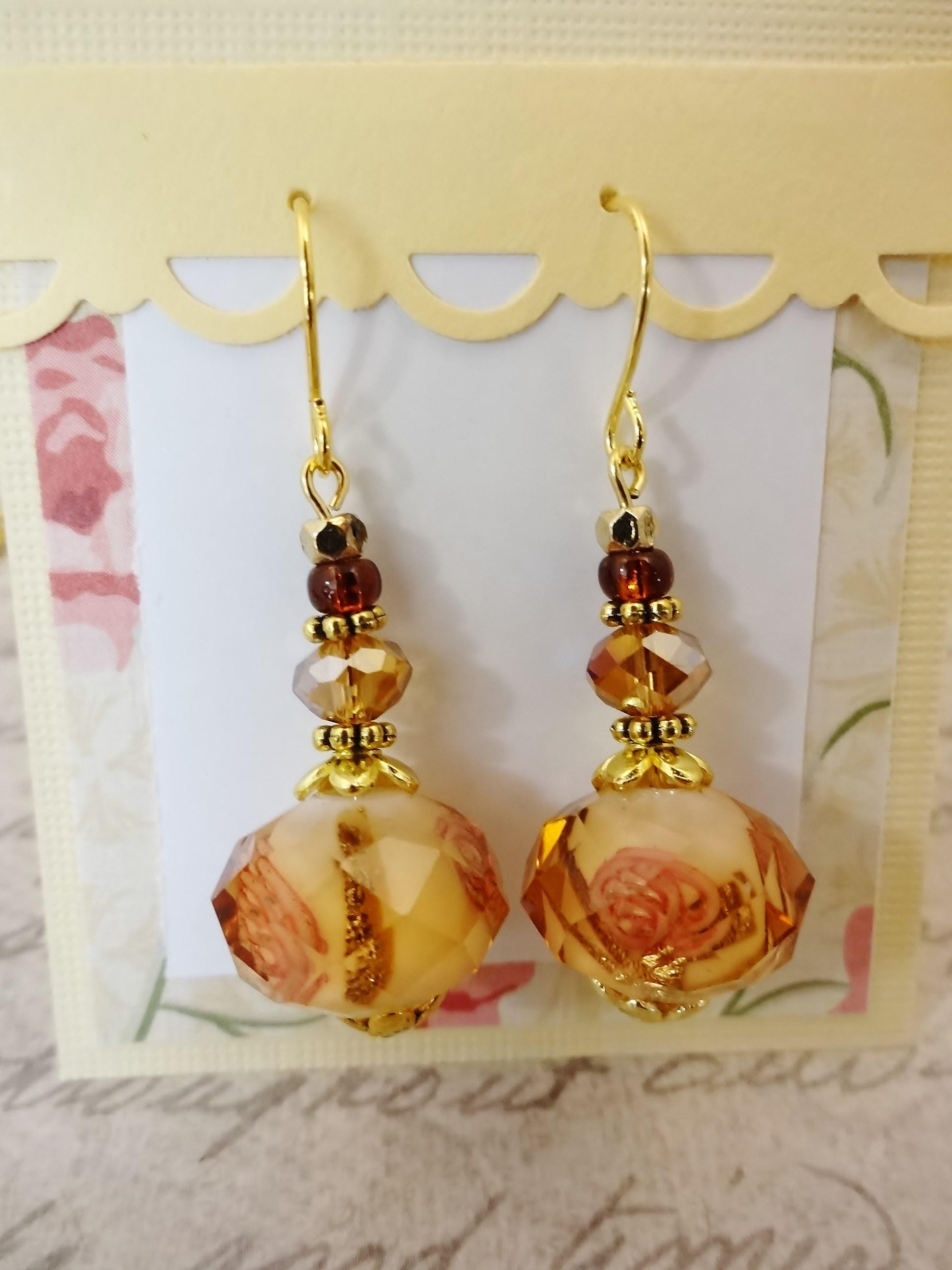 Earrings feature the same beads. Length is about 2.25 inches with Surgical Steel ear wires. Message me if you prefer lever back style ear wires.