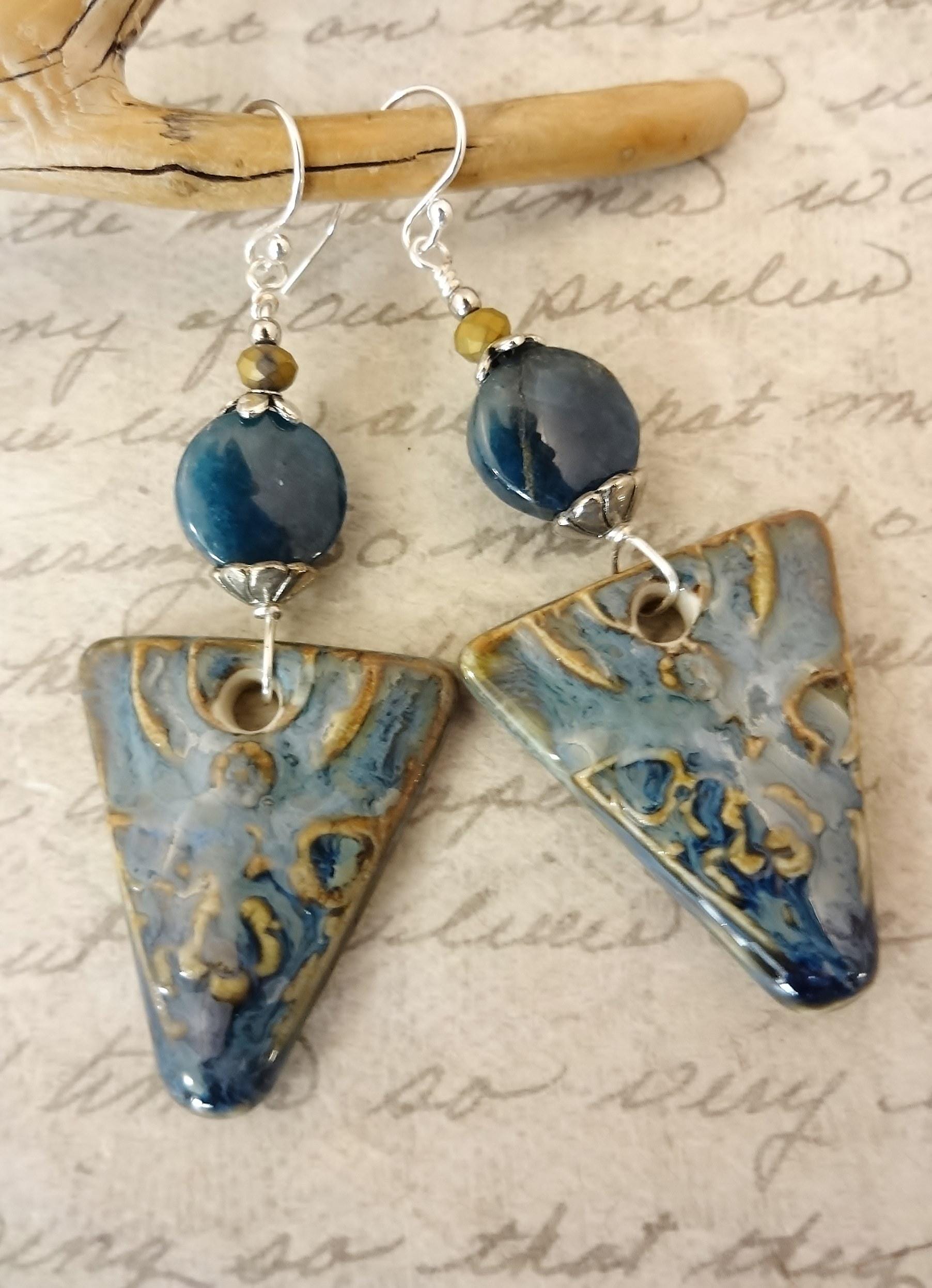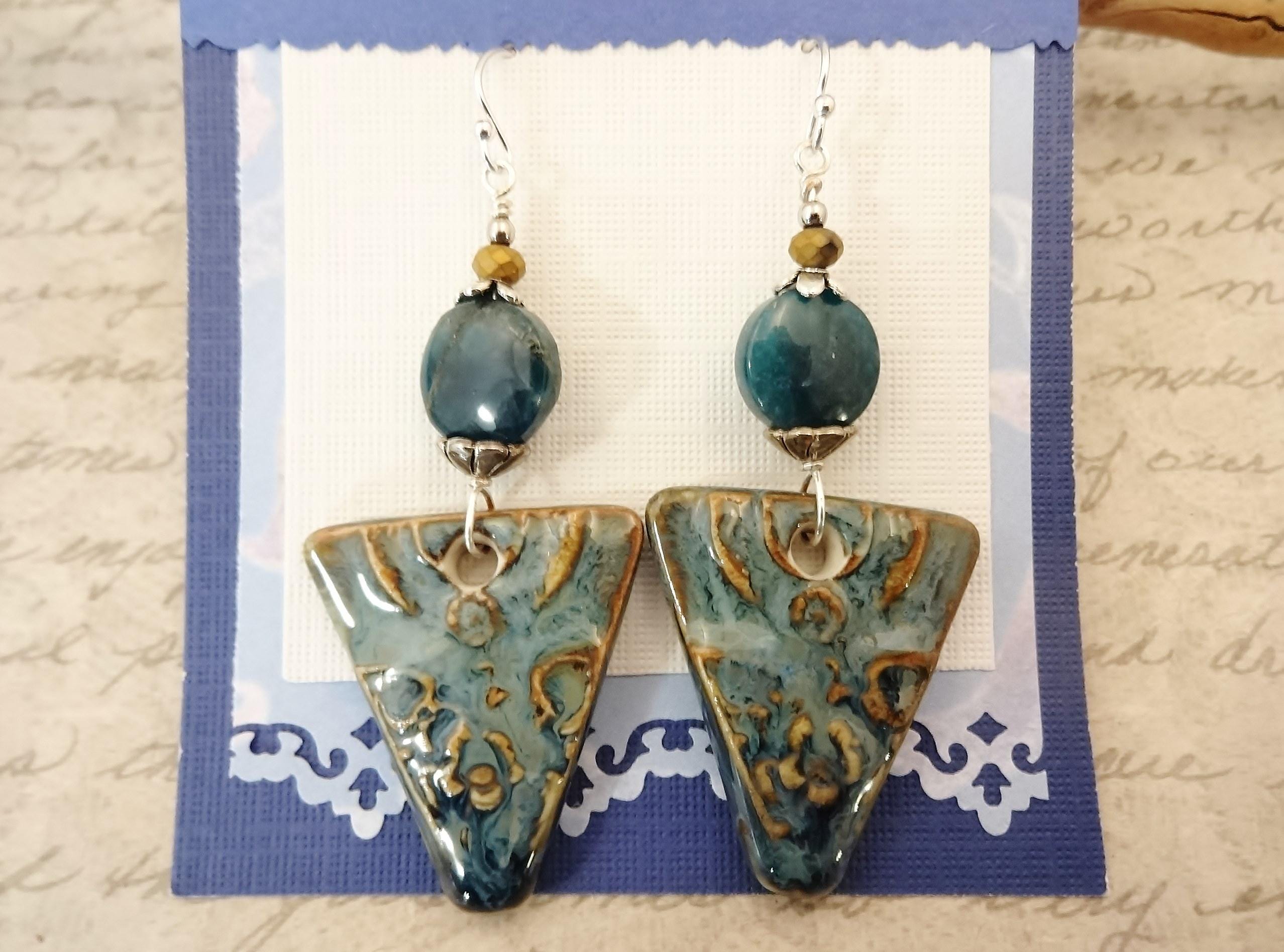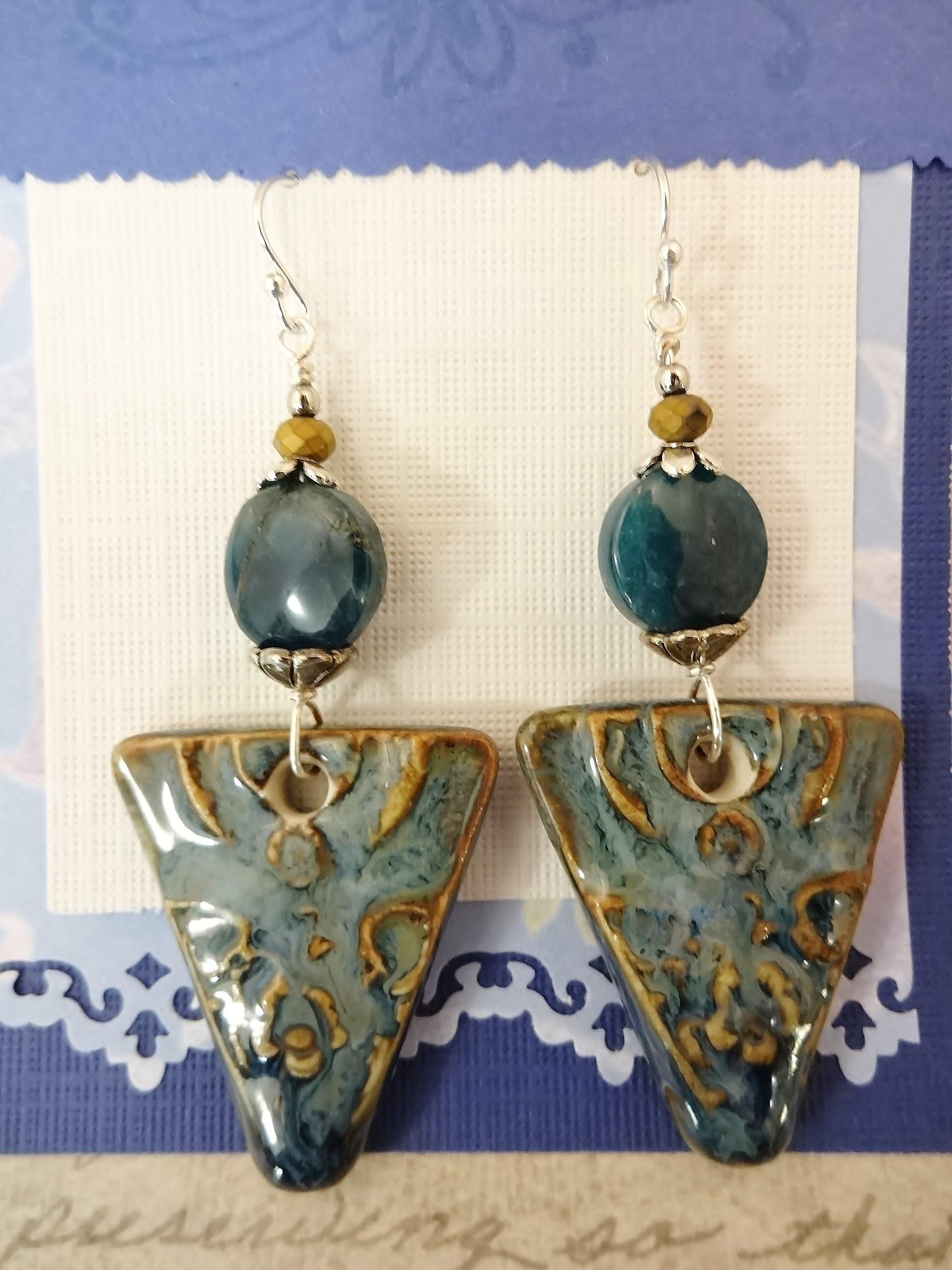 Artisan Ceramic Apatite Earrings: Rustic Boho Gemstone Jewelry