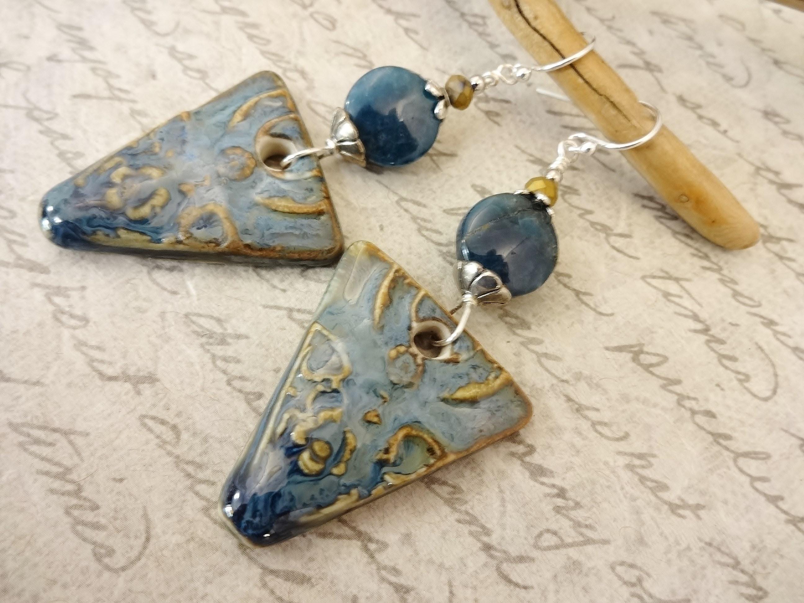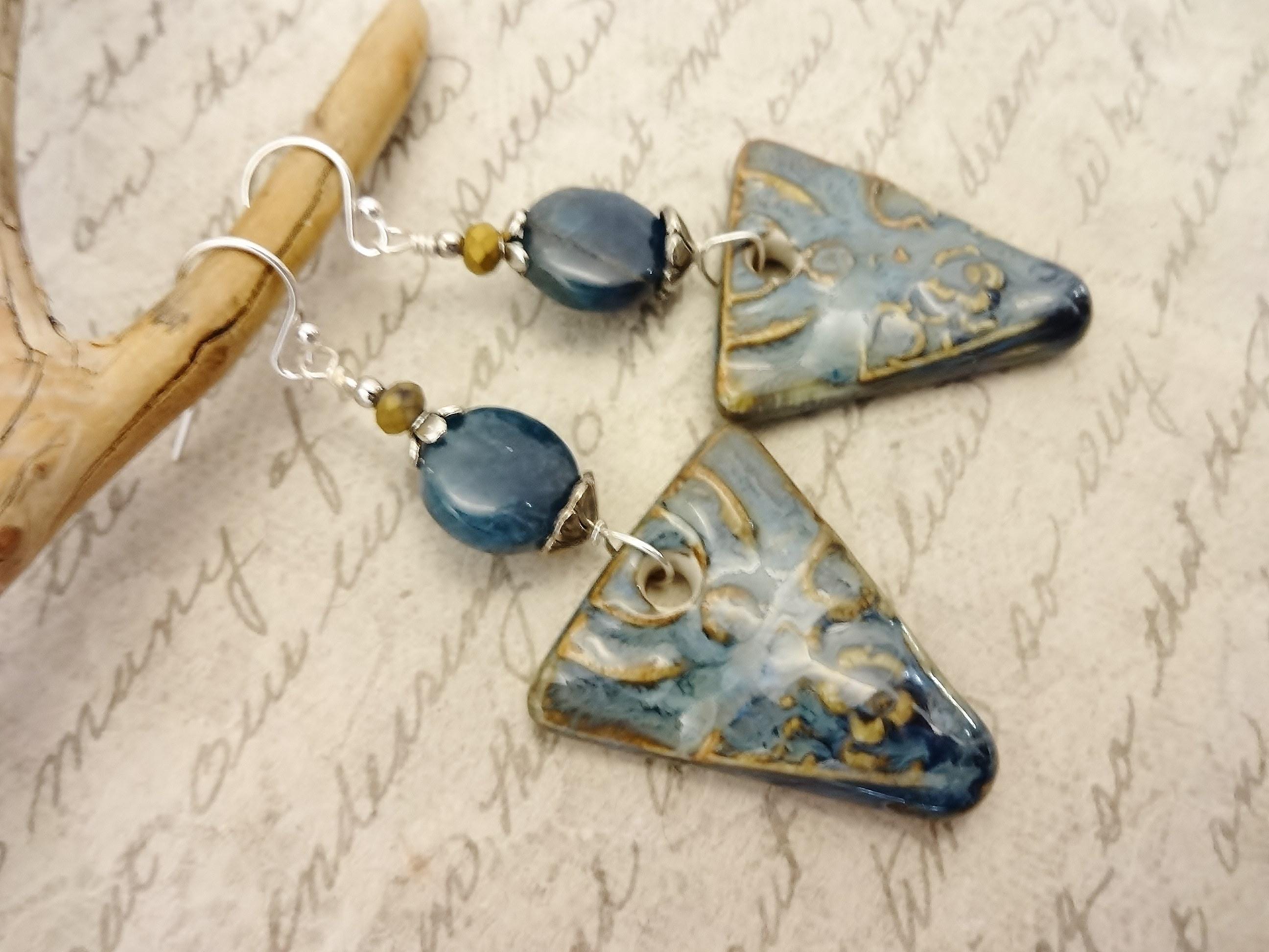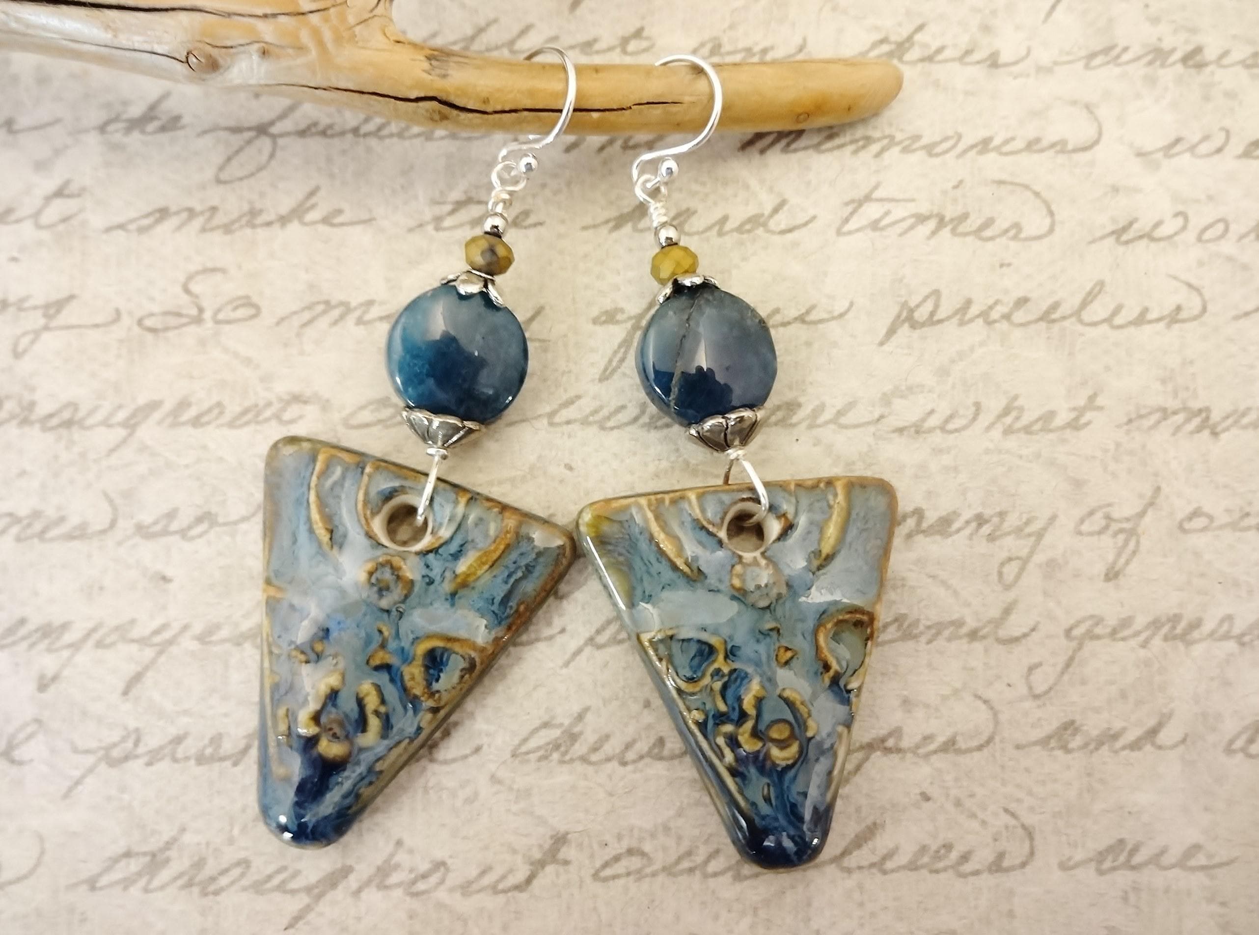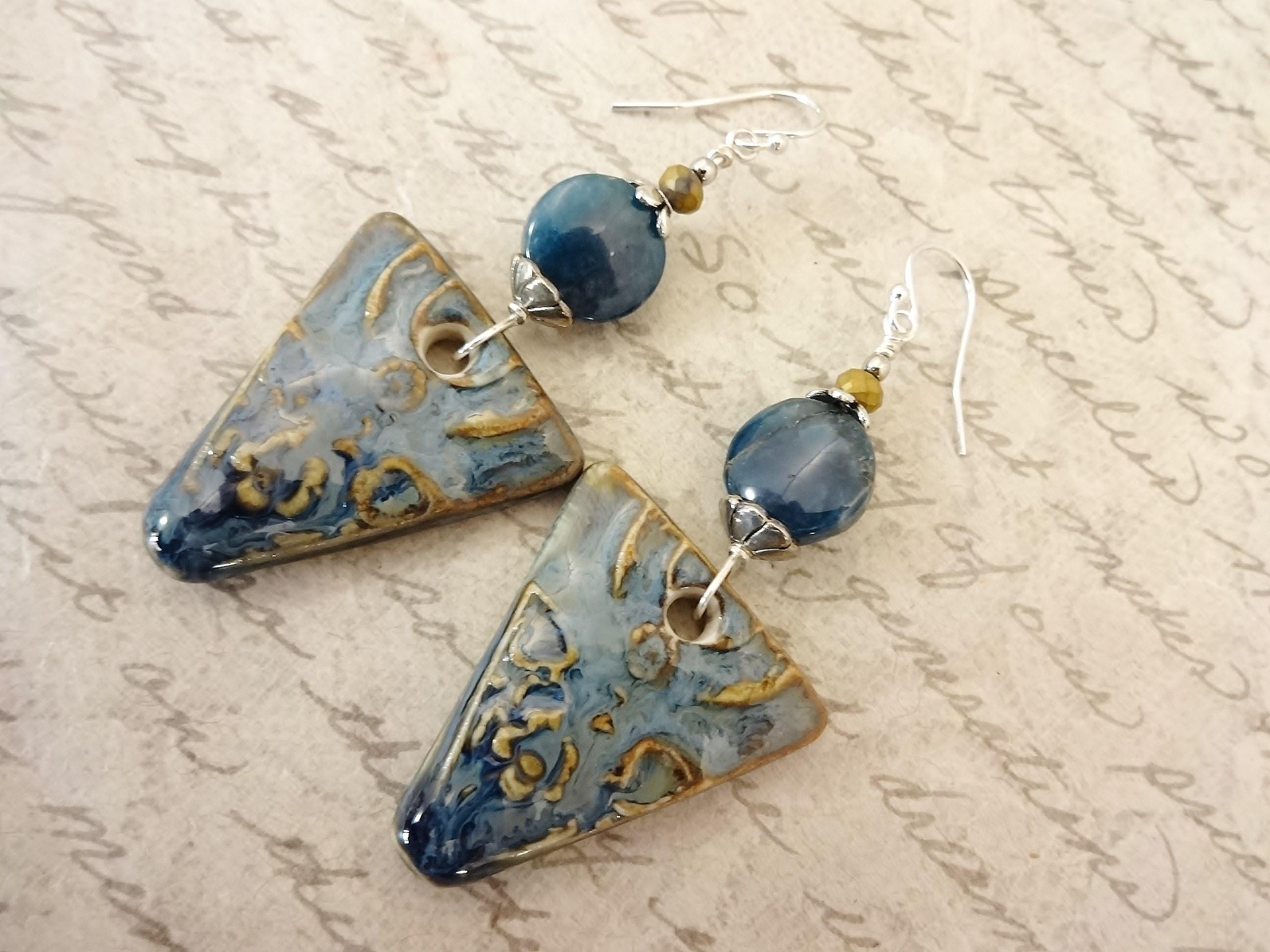 Artisan Ceramic Apatite Earrings: Rustic Boho Gemstone Jewelry