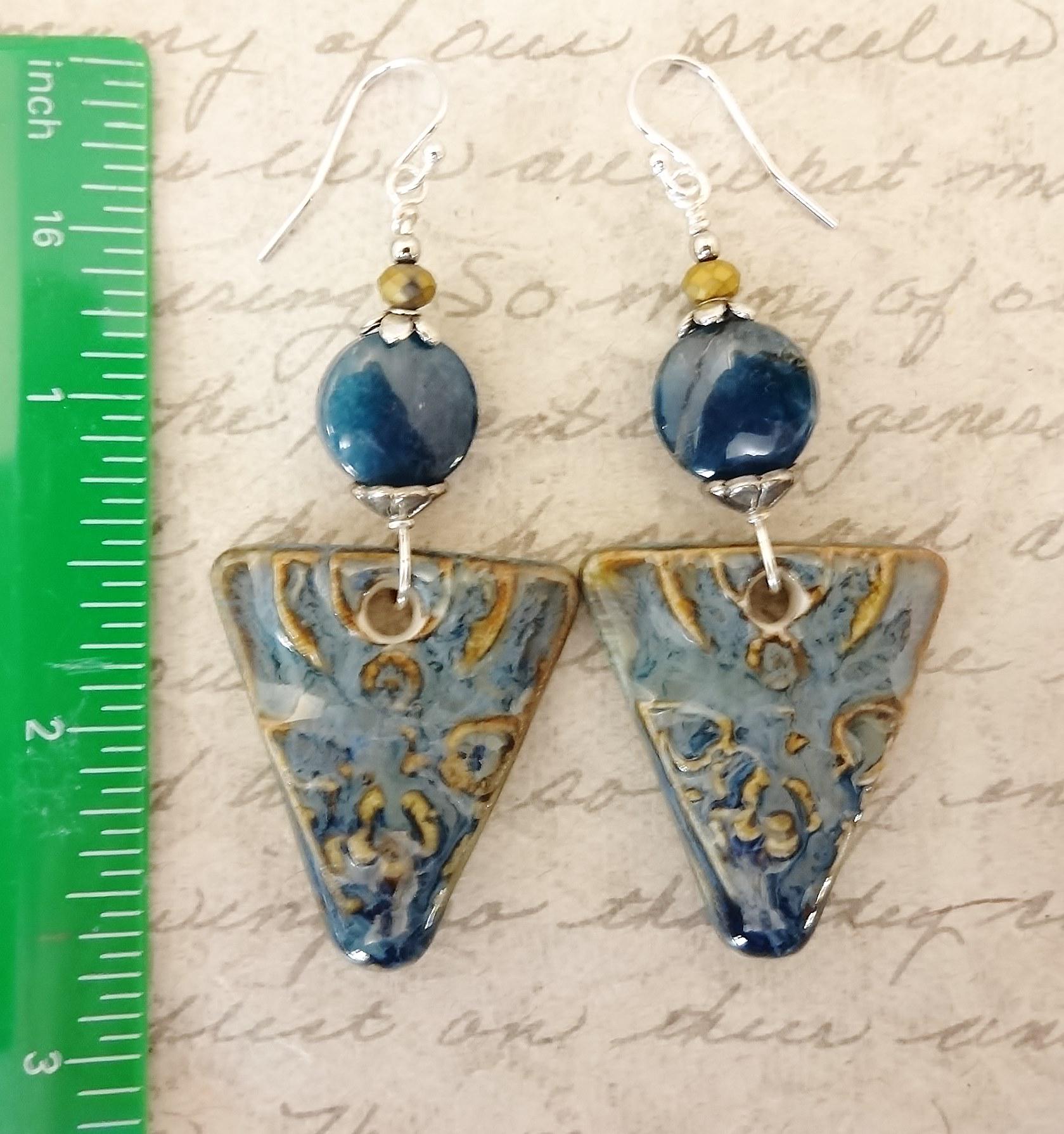 These earrings measure 2.75 inches from the top of the ear wires to the bottom of the ceramic drops.