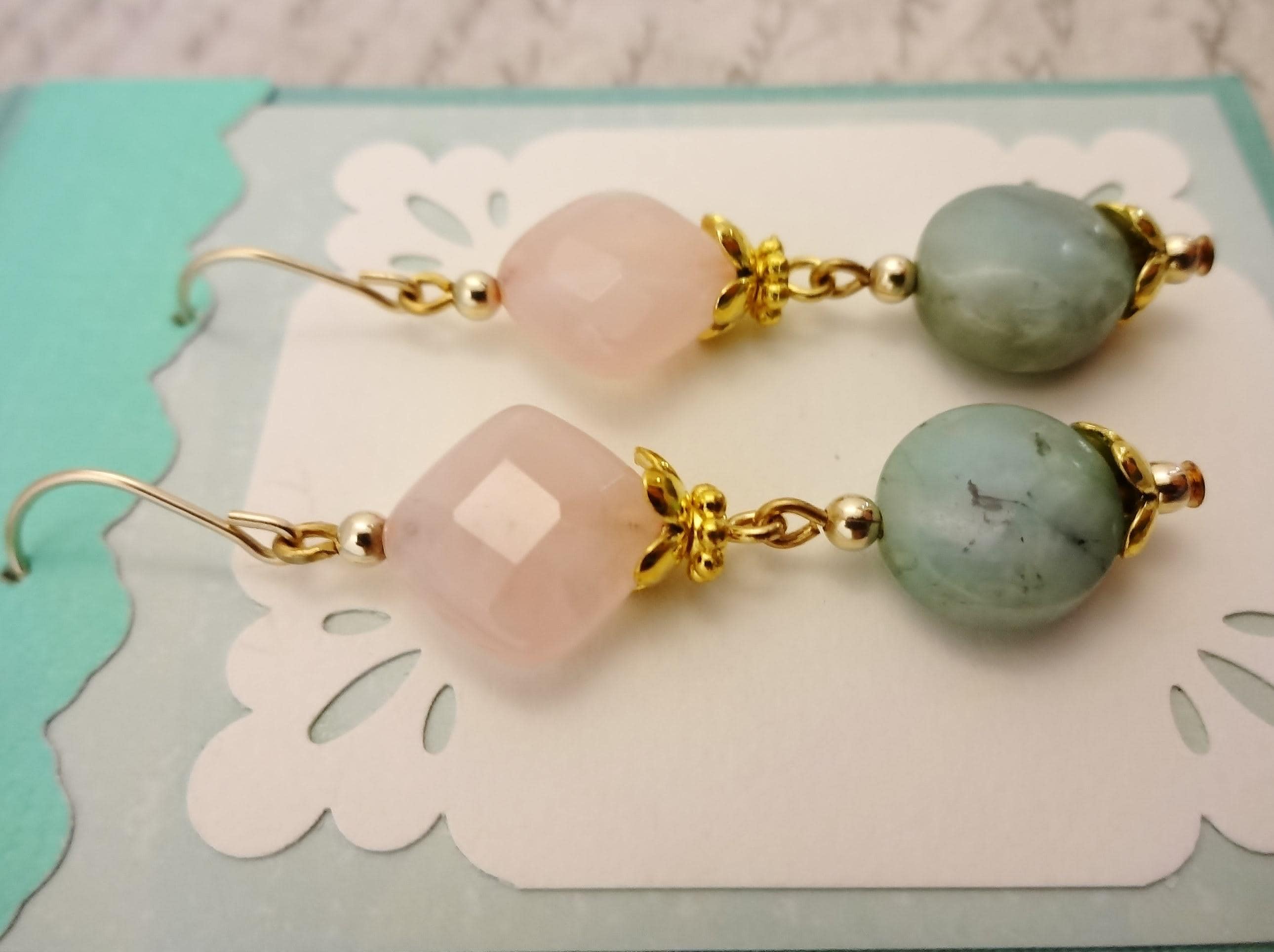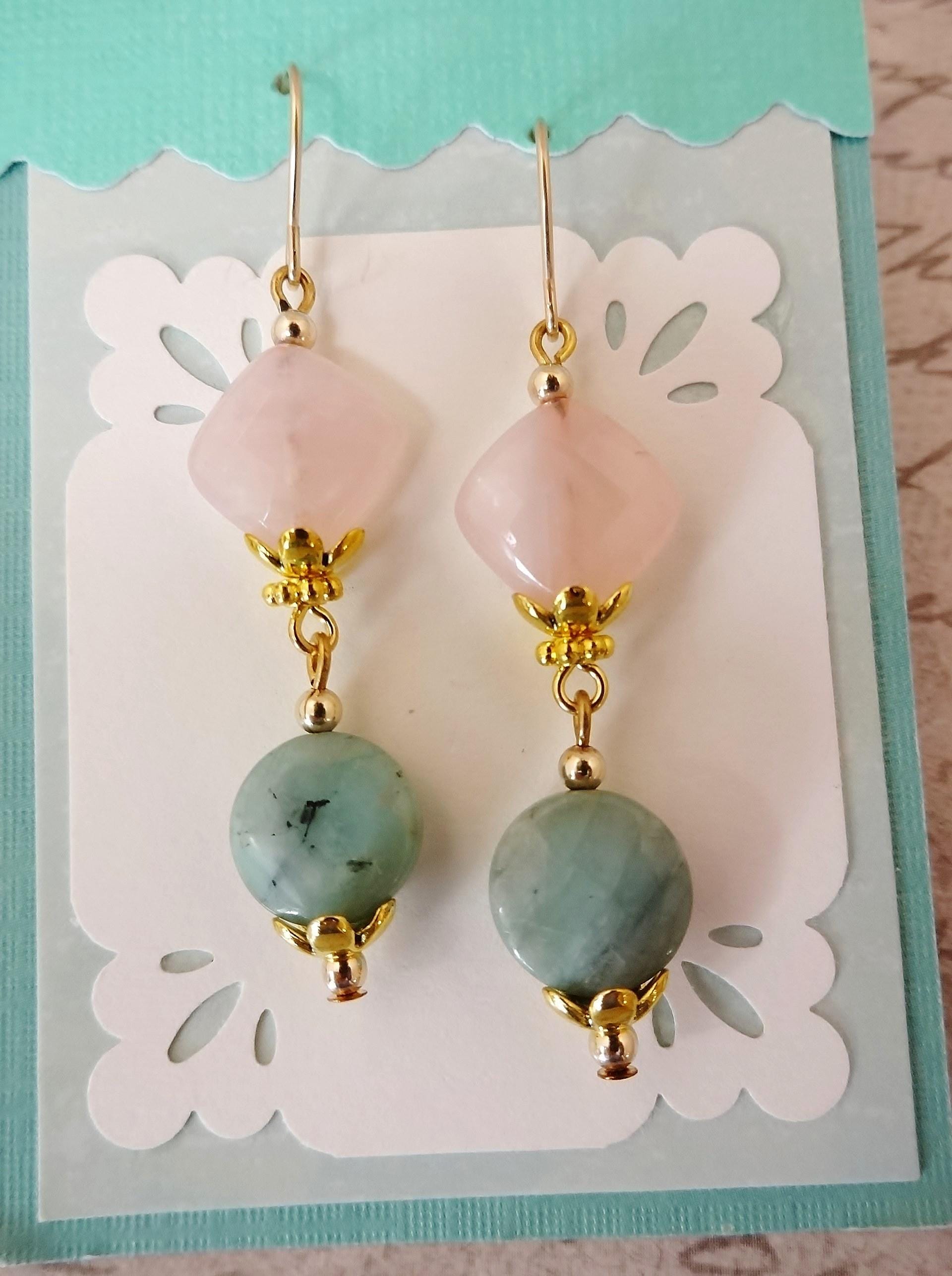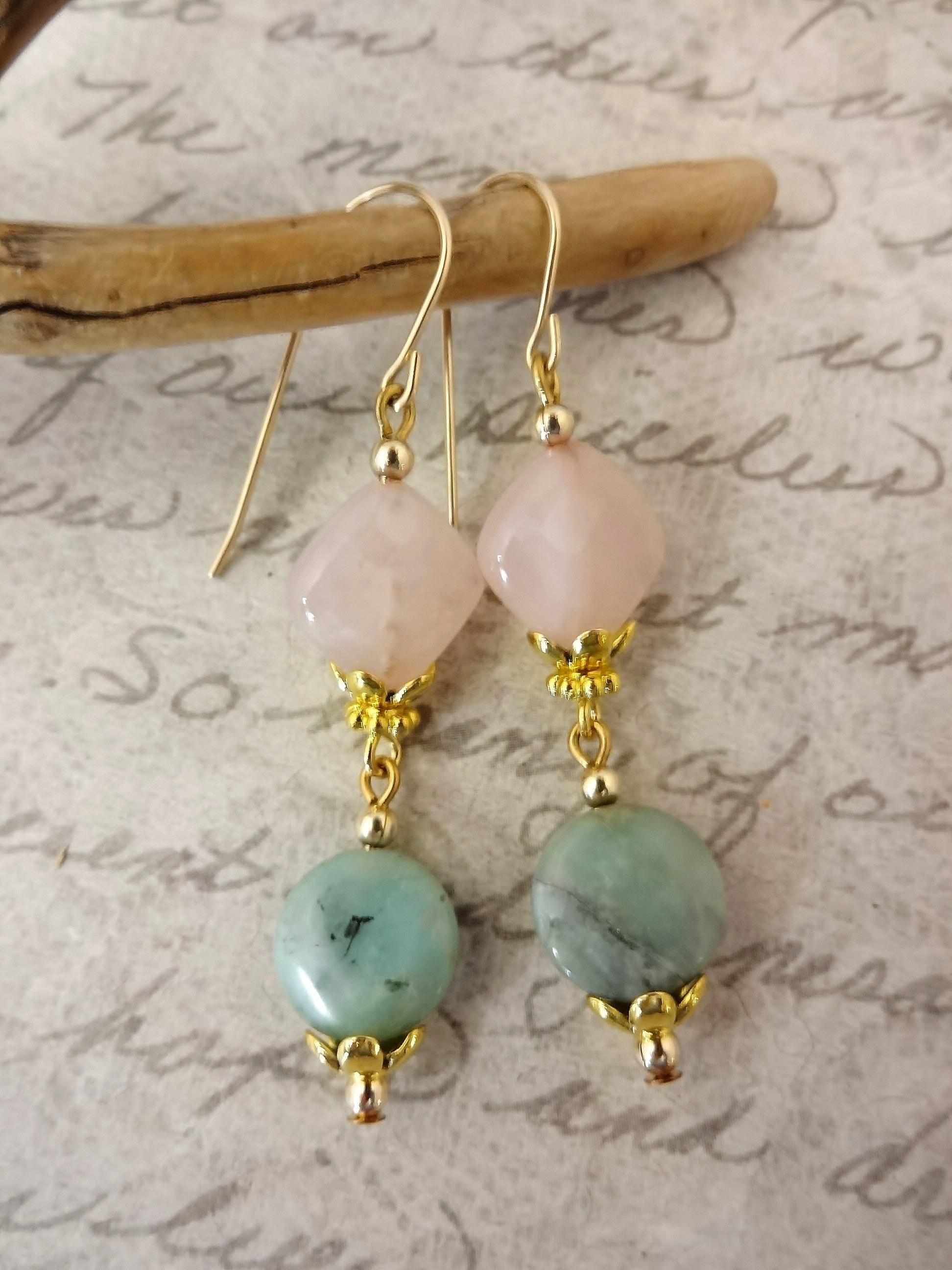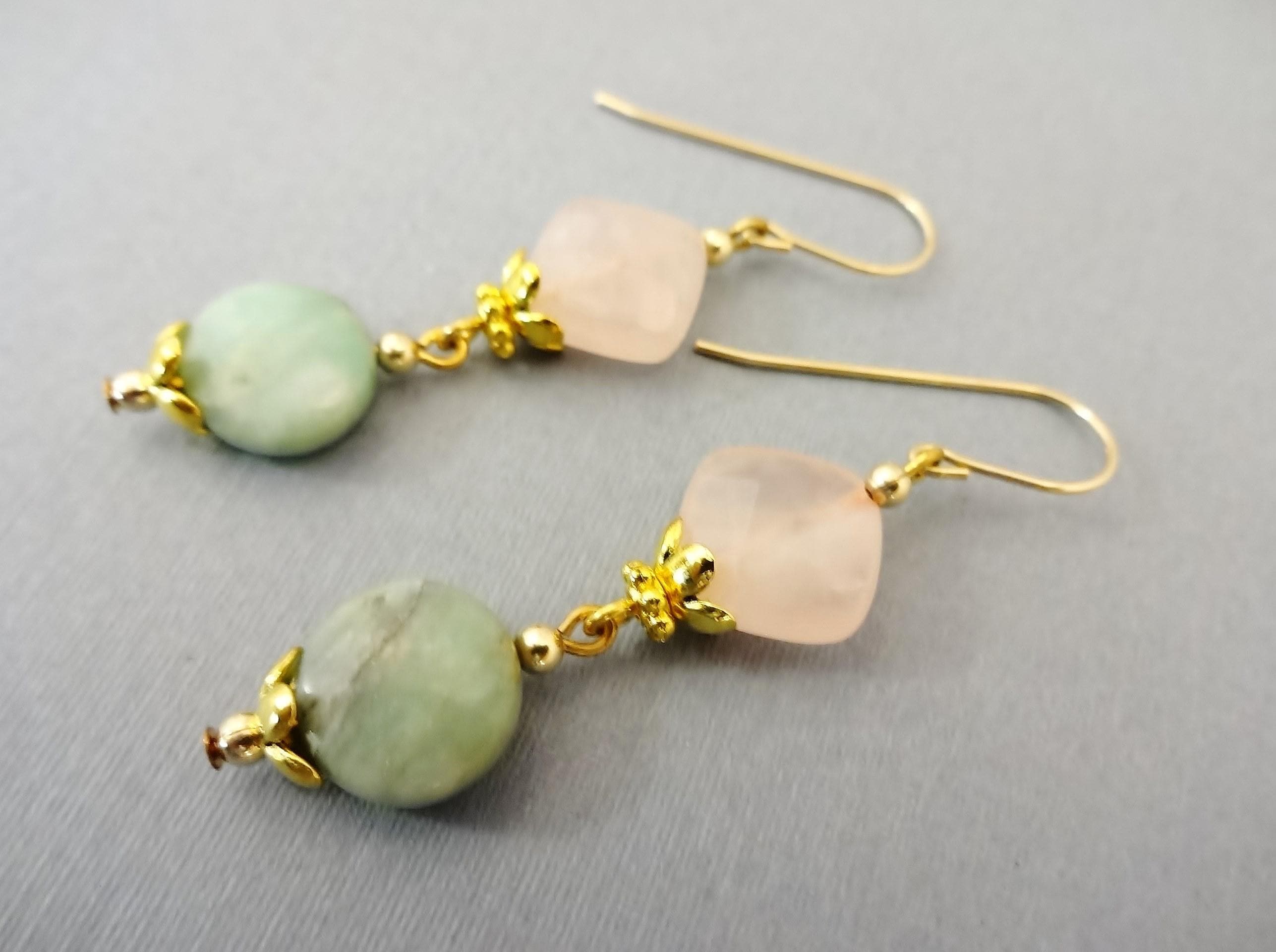 Rose Quartz and Chrysoprase Earrings: 14k Gold Fill, Rose Quartz Jewelry, Gift for Her
