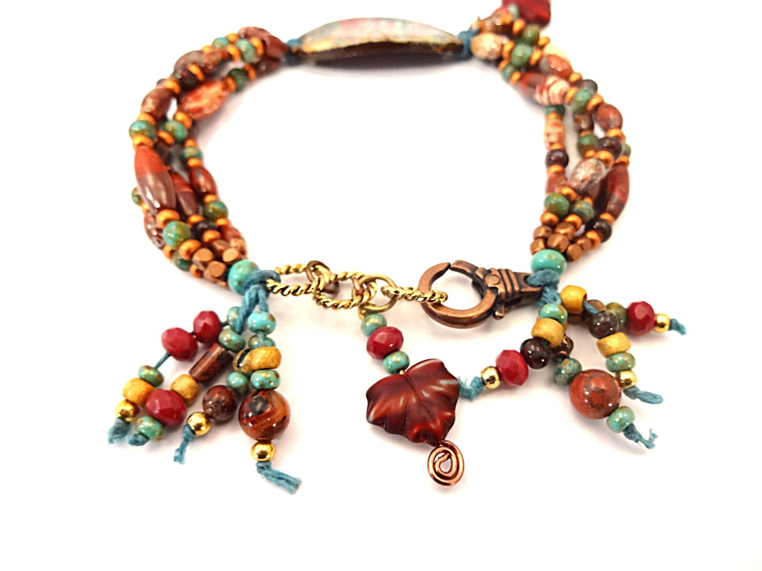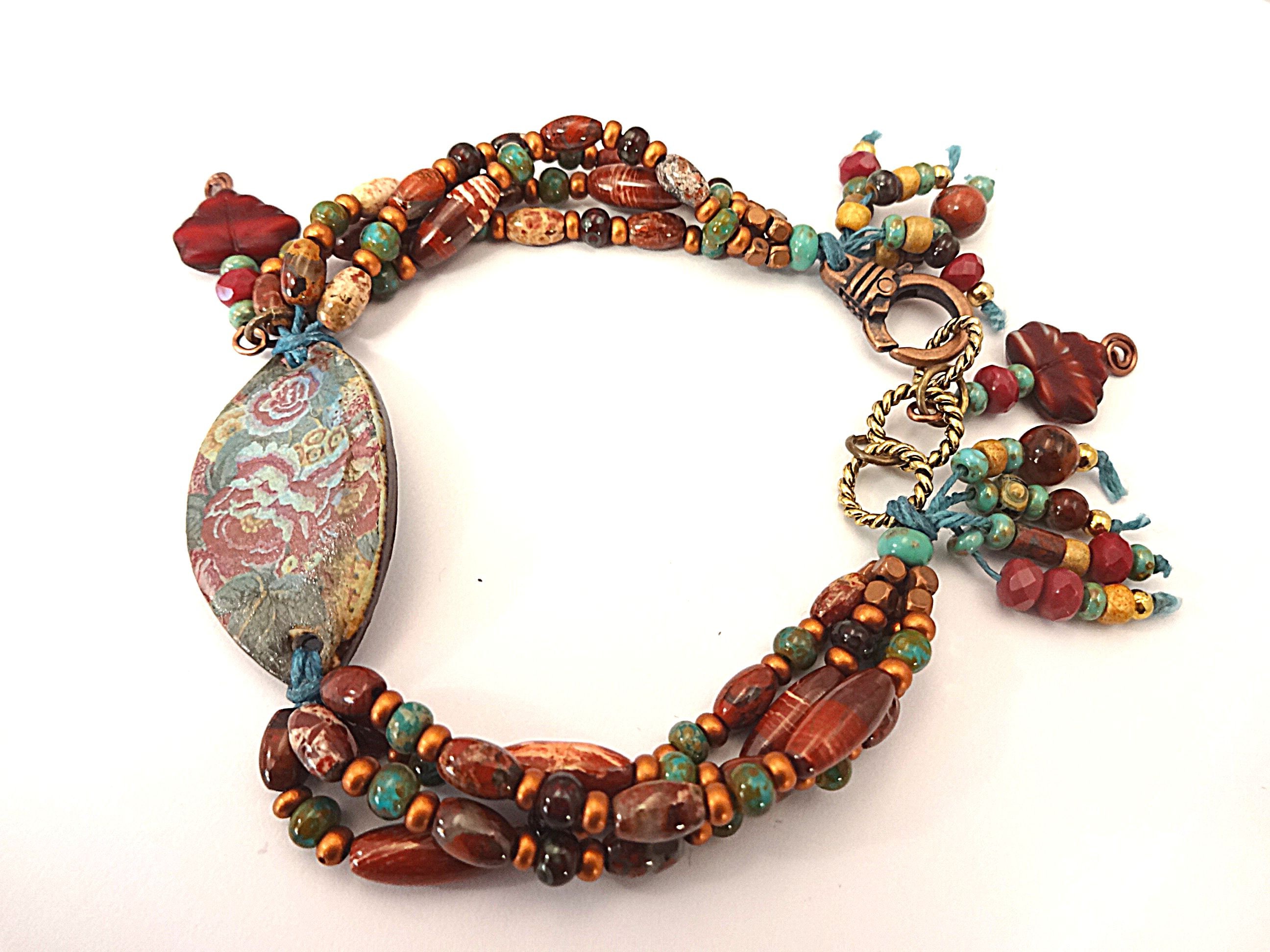 Bohemian Jasper Bracelet Multi Strand Colorful Gypsy Bracelet Boho Style Jasper Stone Jewelry Wine Red Bracelet Gypsy Jewelry Rustic Style