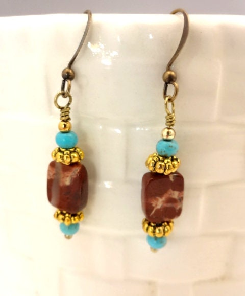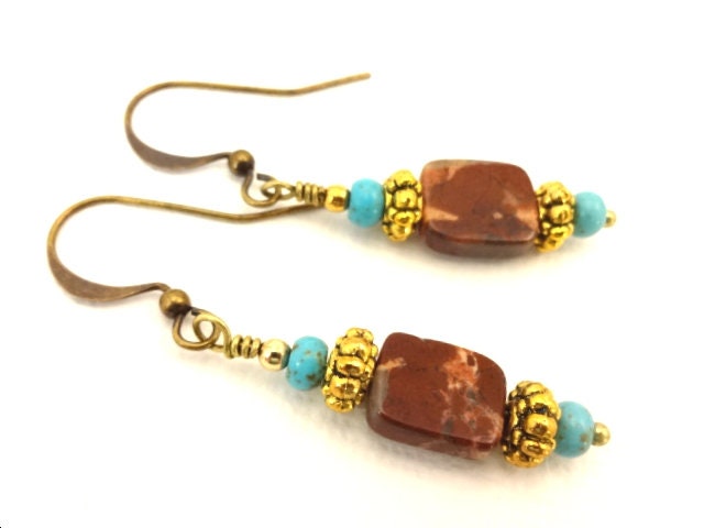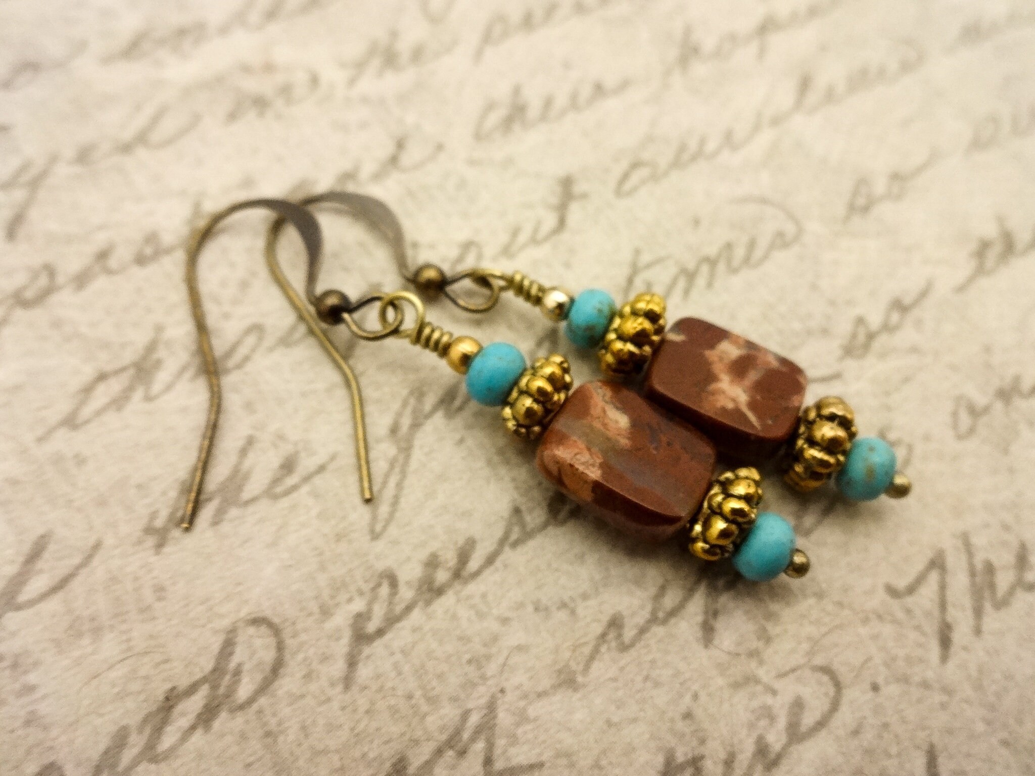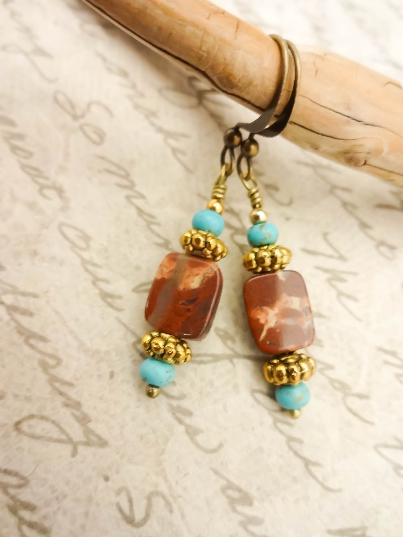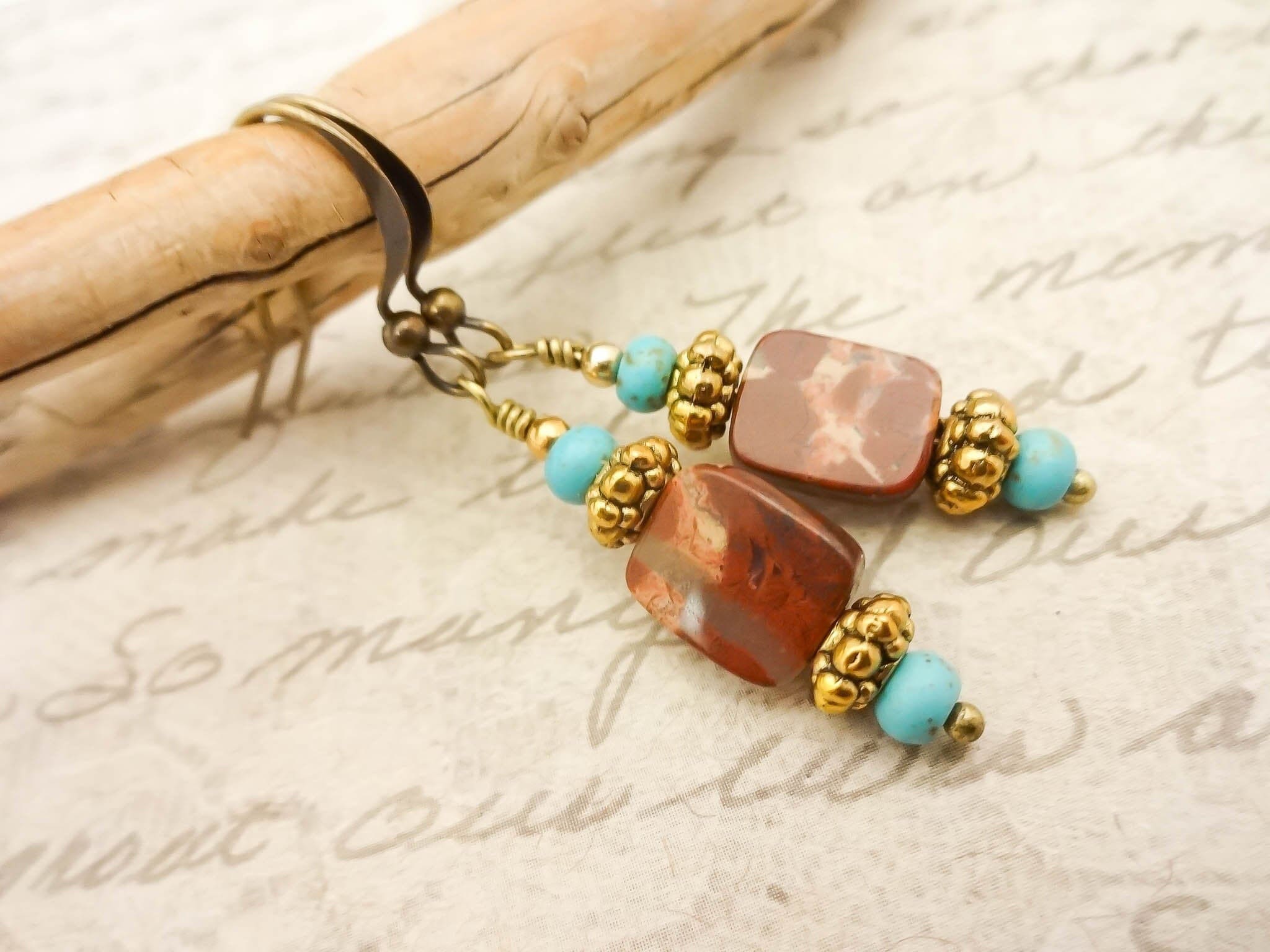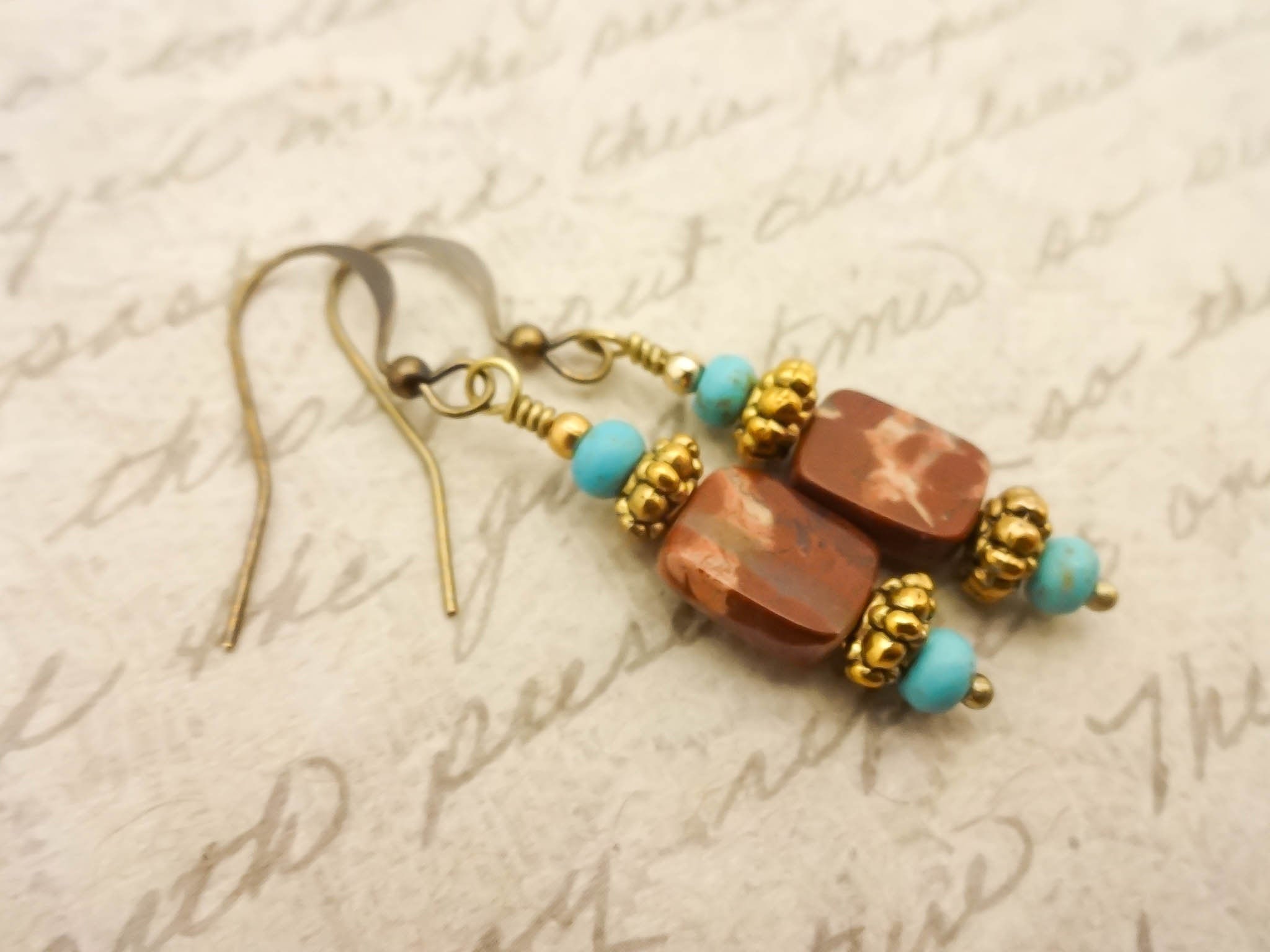Bohemian Earrings Jasper Earrings Turquoise Earrings Gemstone Earrings Stone Earrings Jasper Jewelry Rustic Earrings Jewelry Gift for Mom