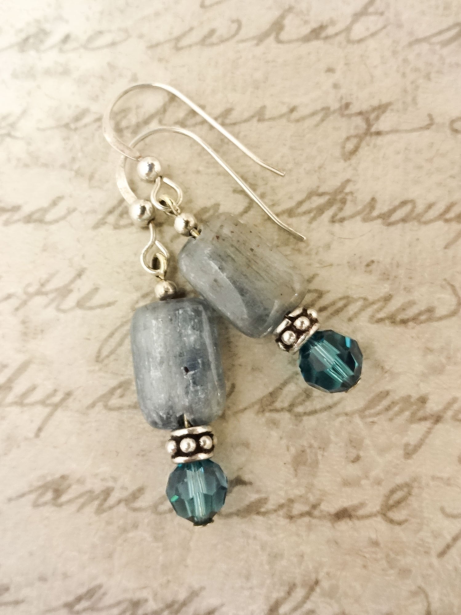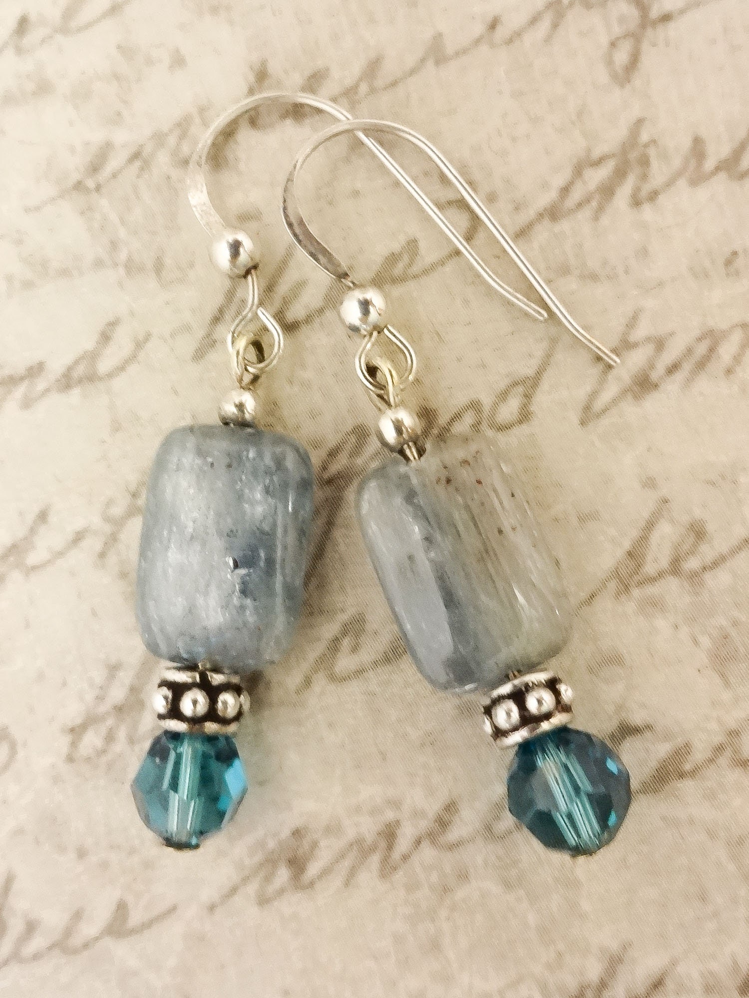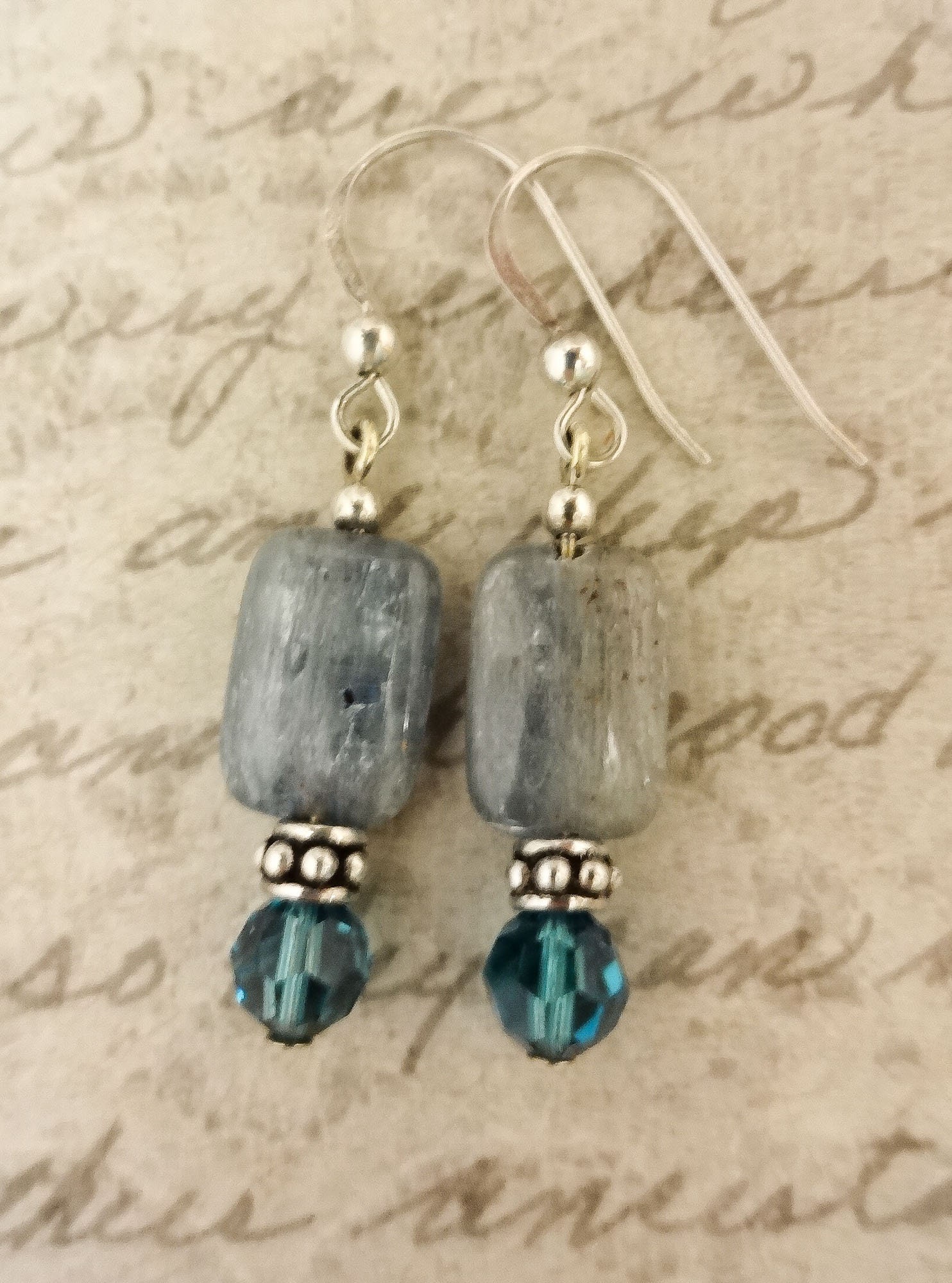 Sweet Blue Kyanite rectangles with Sterling Silver accent beads and 6mm round Swarovski Crystals make these earrings a beautiful alternative when you need something in the blue family.
