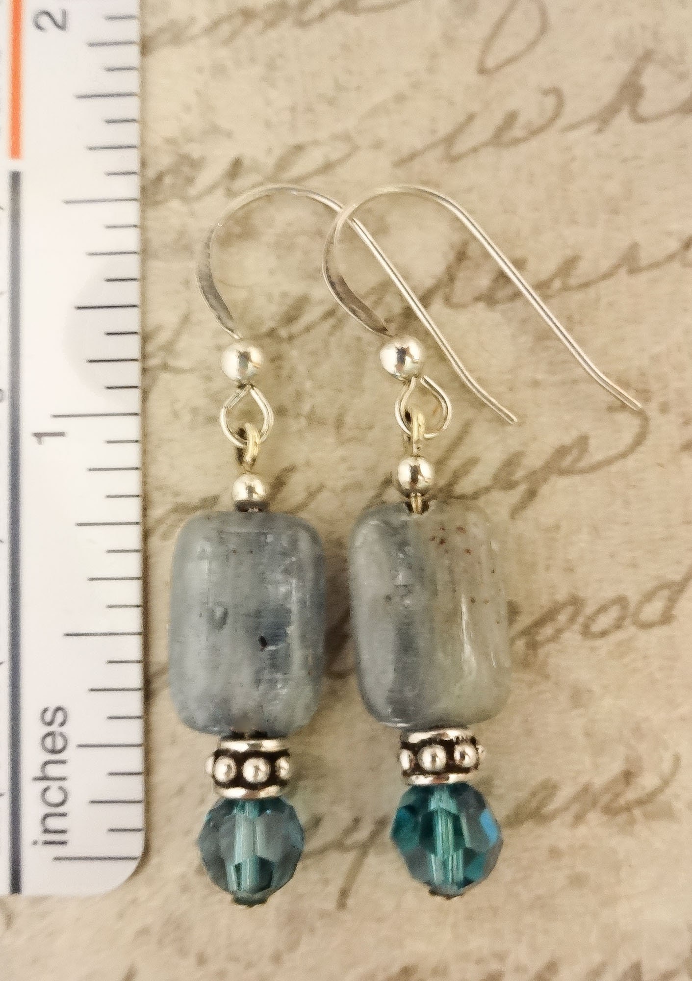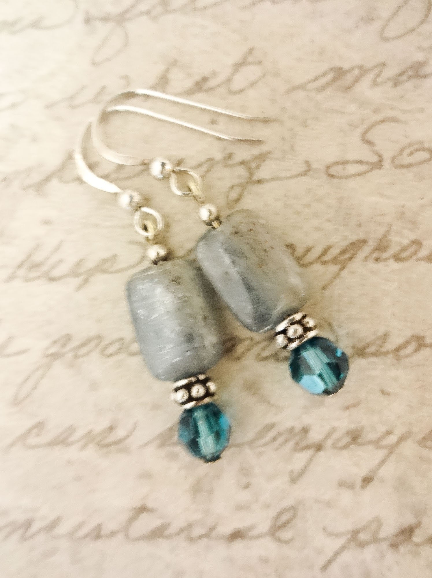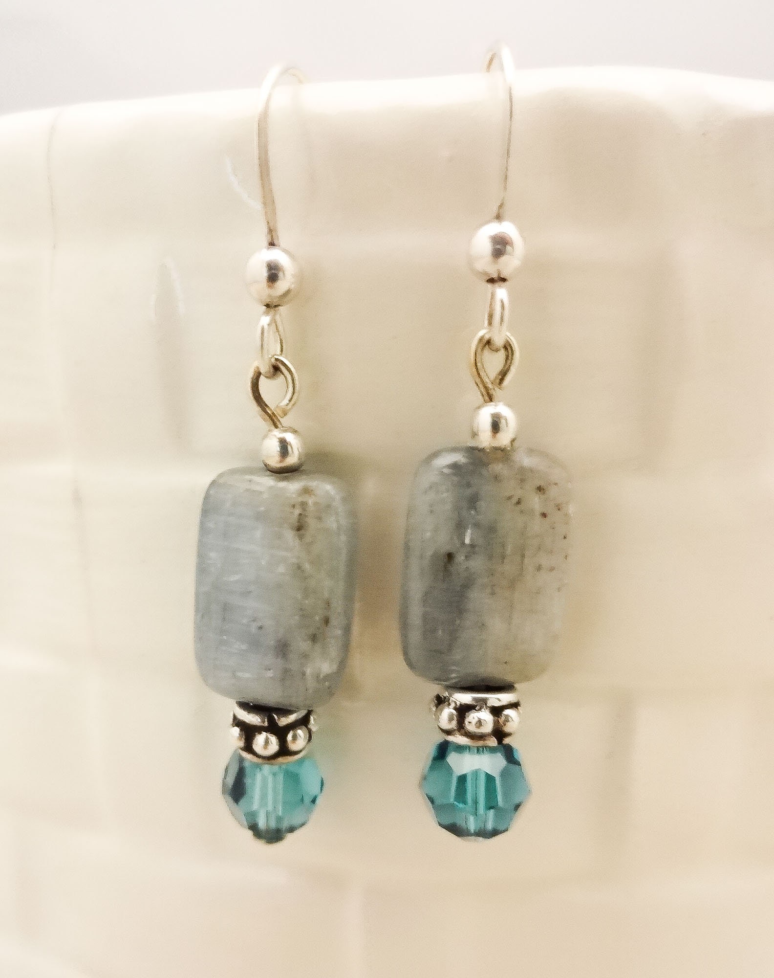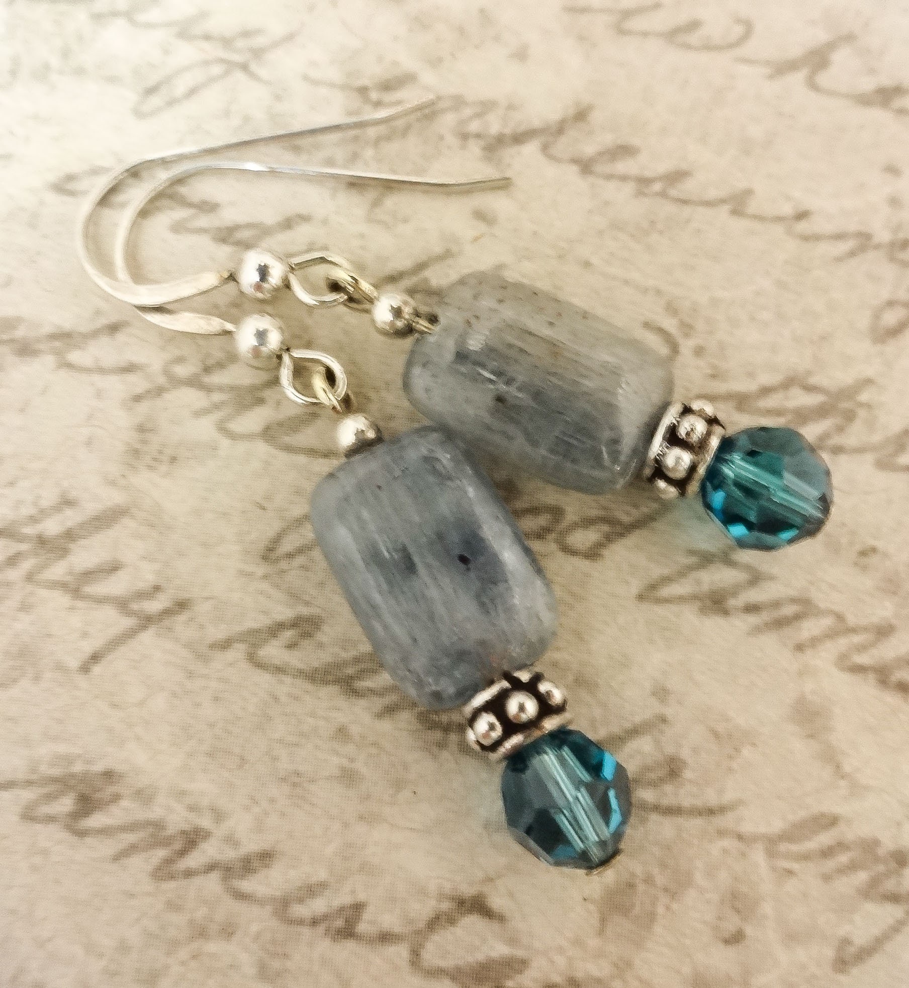 Sweet Blue Kyanite rectangles with Sterling Silver accent beads and 6mm round Swarovski Crystals make these earrings a beautiful alternative when you need something in the blue family.